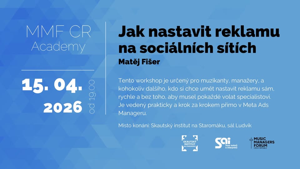 Součástí je i prostor na dotazy a konkrétní příklady z praxe, včetně toho, jak propagovat koncerty. Cílem je, aby si každý odnesl jistotu, že reklamu dokáže spustit a vyhodnotit sám.