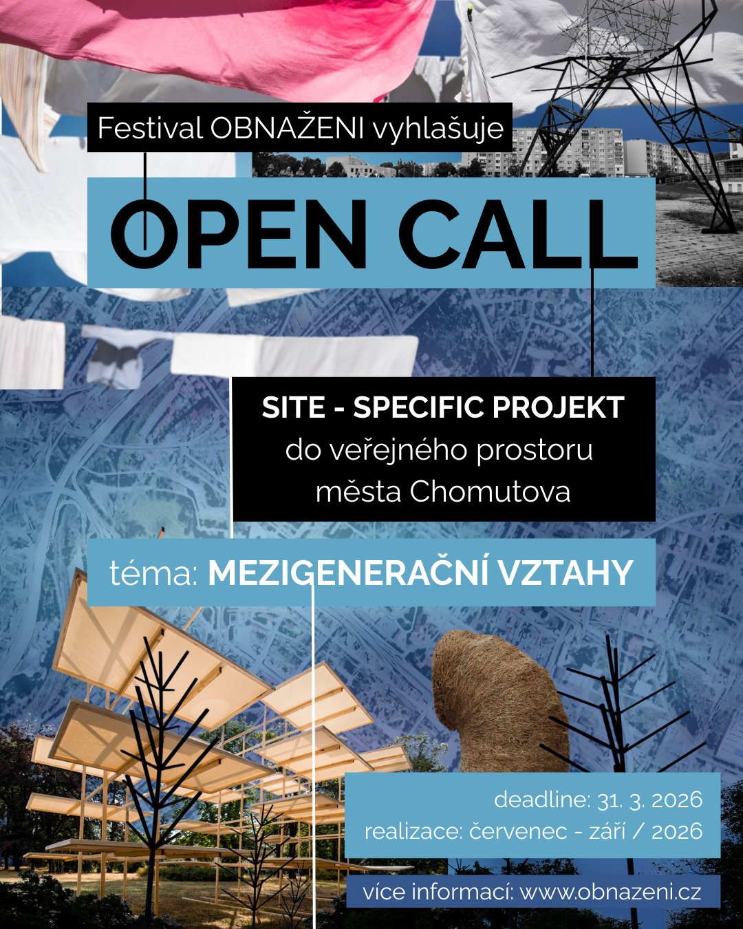 Ve veřejném prostoru města Chomutova bude realizovaný vítězný projekt na site-specific instalaci, která bude zpracovávat téma 21. ročníku festivalu Obnaženi (2026): mezigenerační vztahy.