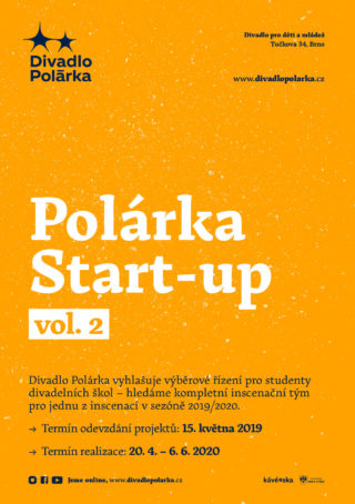 V sezoně 2019/2020 vznikne v Polárce celkem pět premiér pro různé věkové skupiny, přičemž inscenační tým jedné z nich (režie, dramaturgie, scénografie, hudba, popř. další) vzejde právě z výzvy Polárka Start-up.